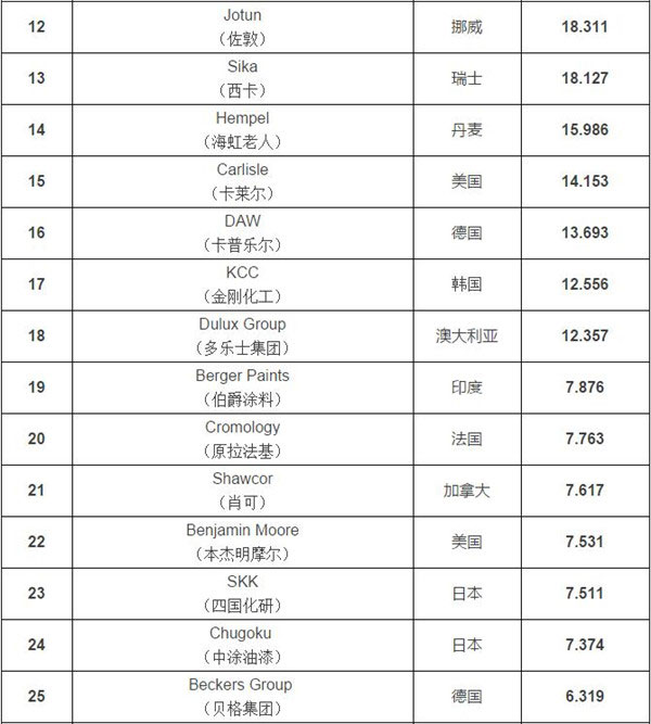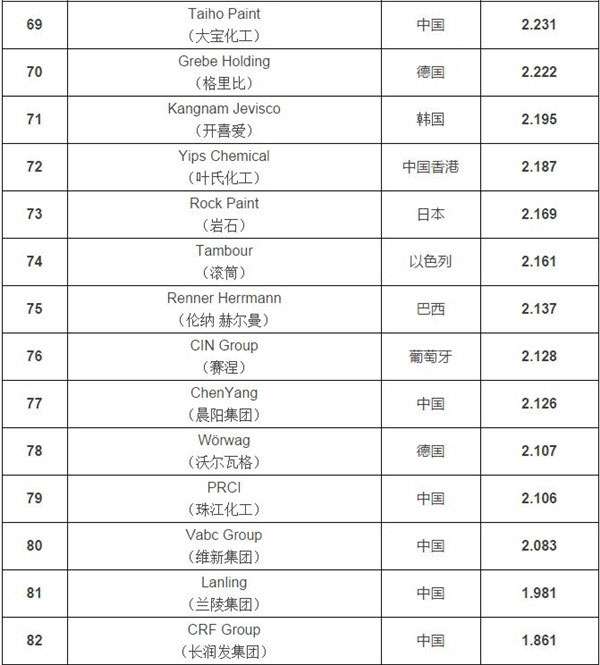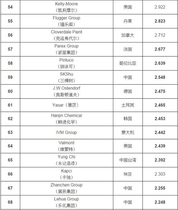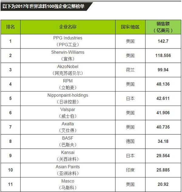 [榜單]2017年世界涂料100強(qiáng)企業(yè)排行榜揭曉,占世界份額高達(dá)51%